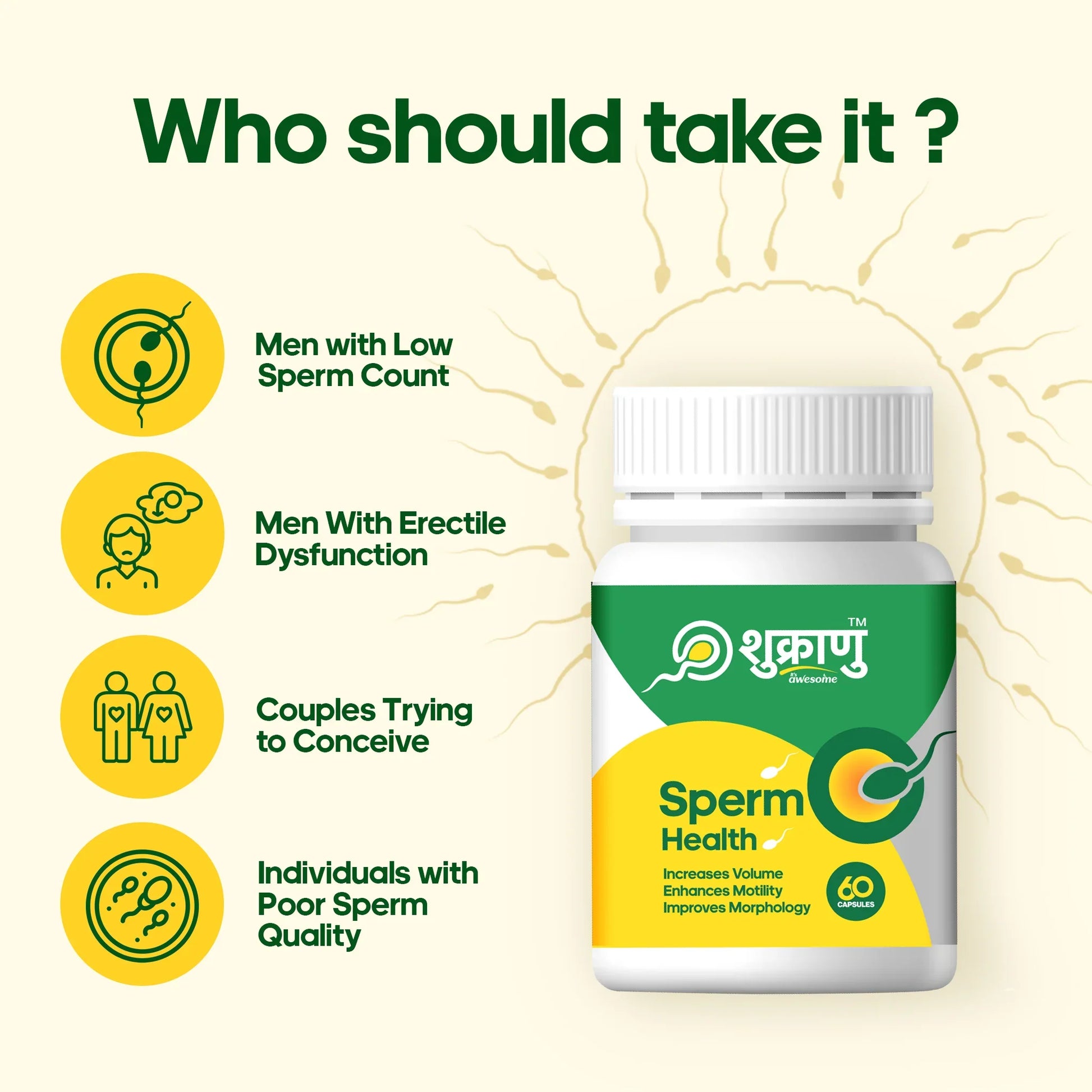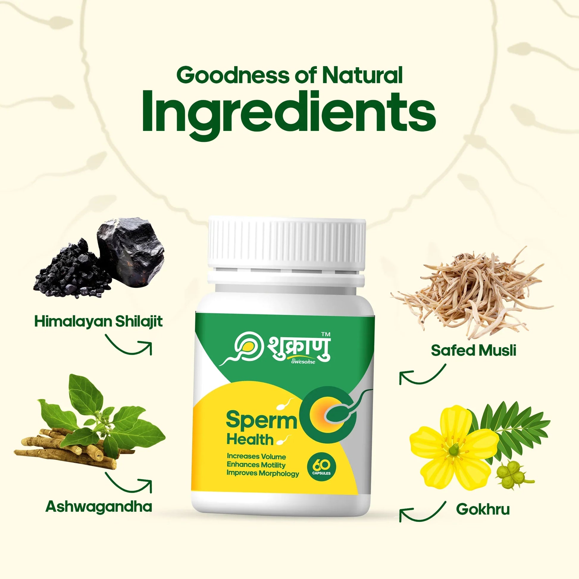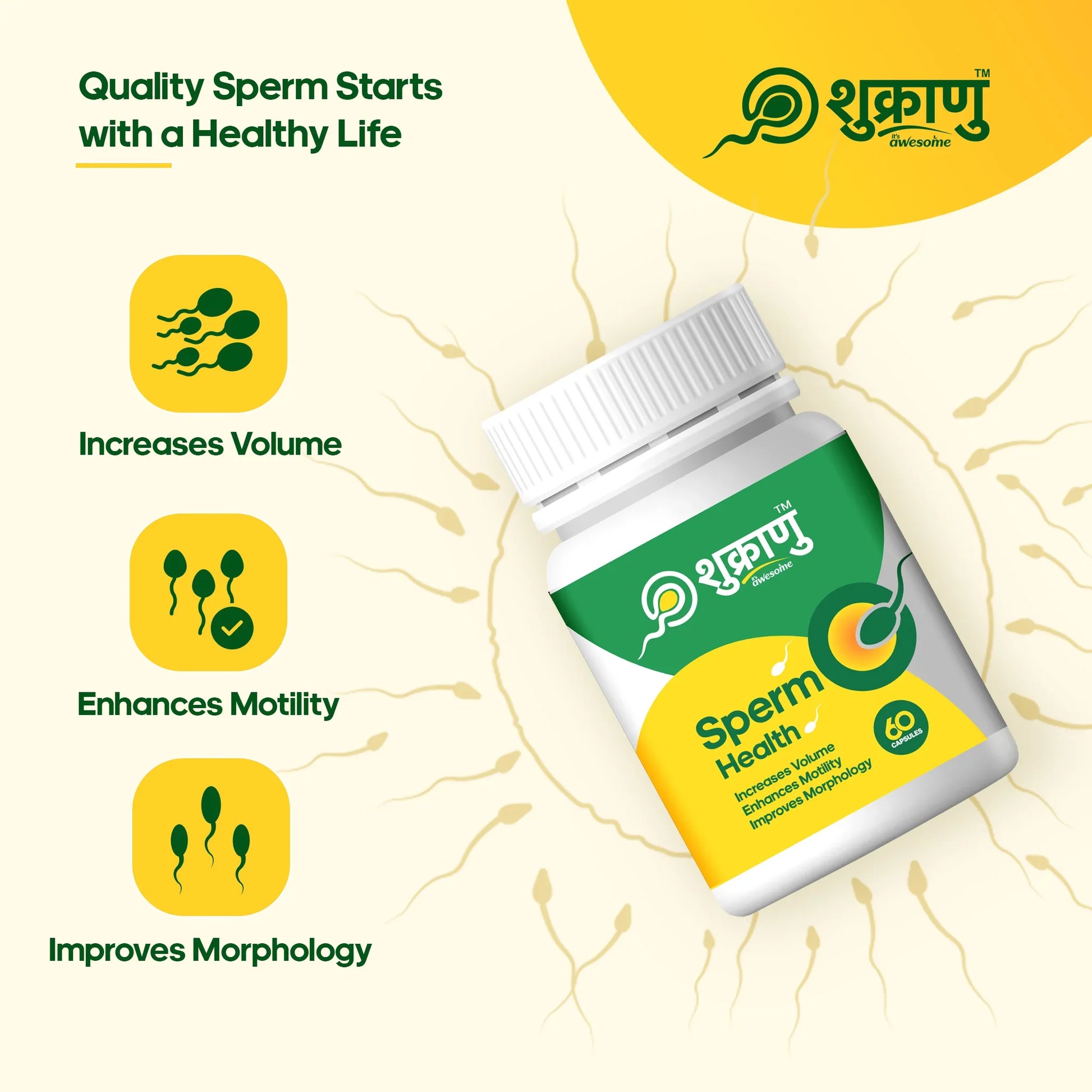 Sperm Health is a 100% plant-based Ayurvedic proprietary medicine designed to enhance male fertility and reproductive health. This natural supplement is formulated to support sperm quality, motility, and overall reproductive wellness.